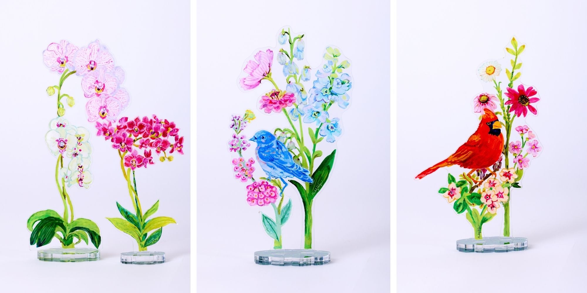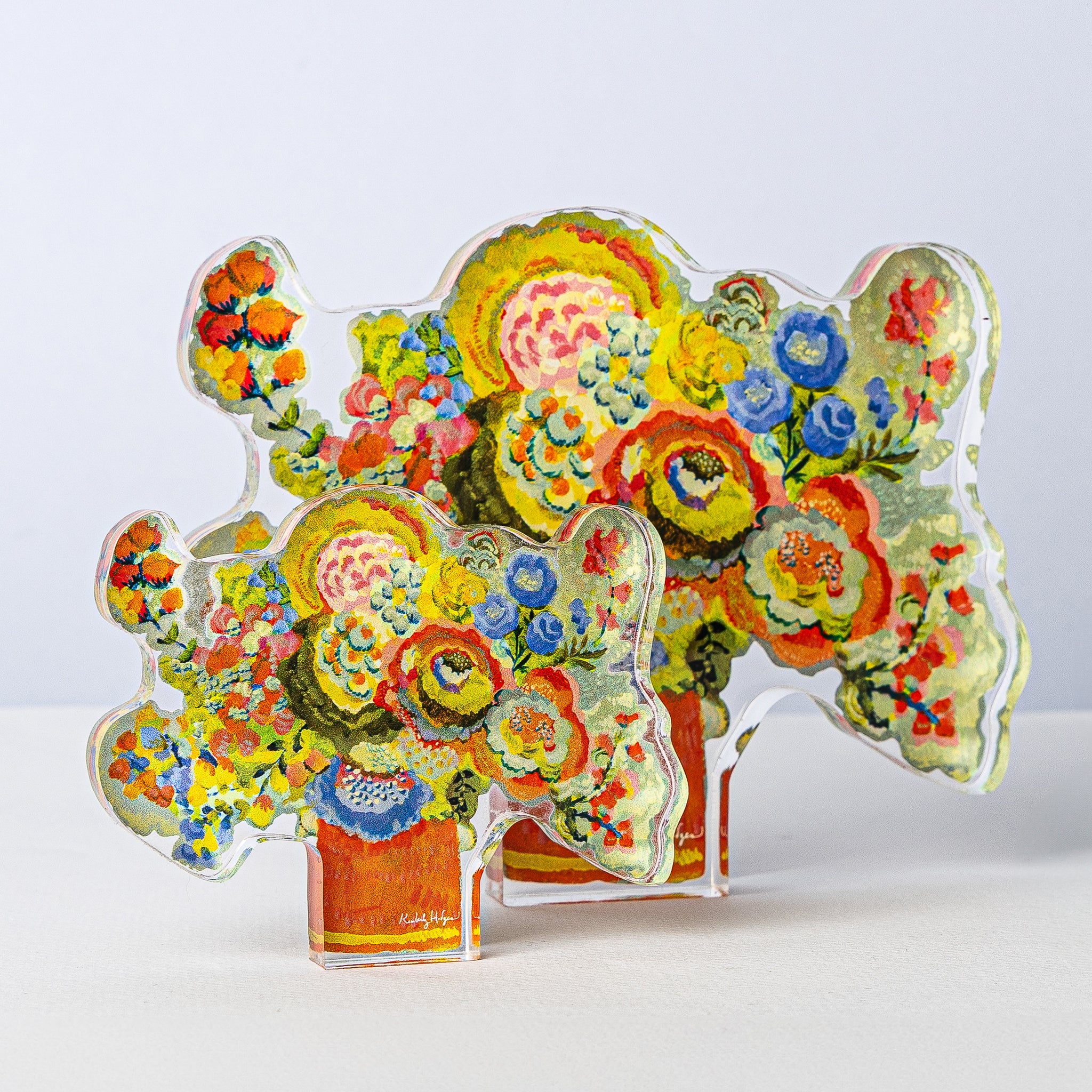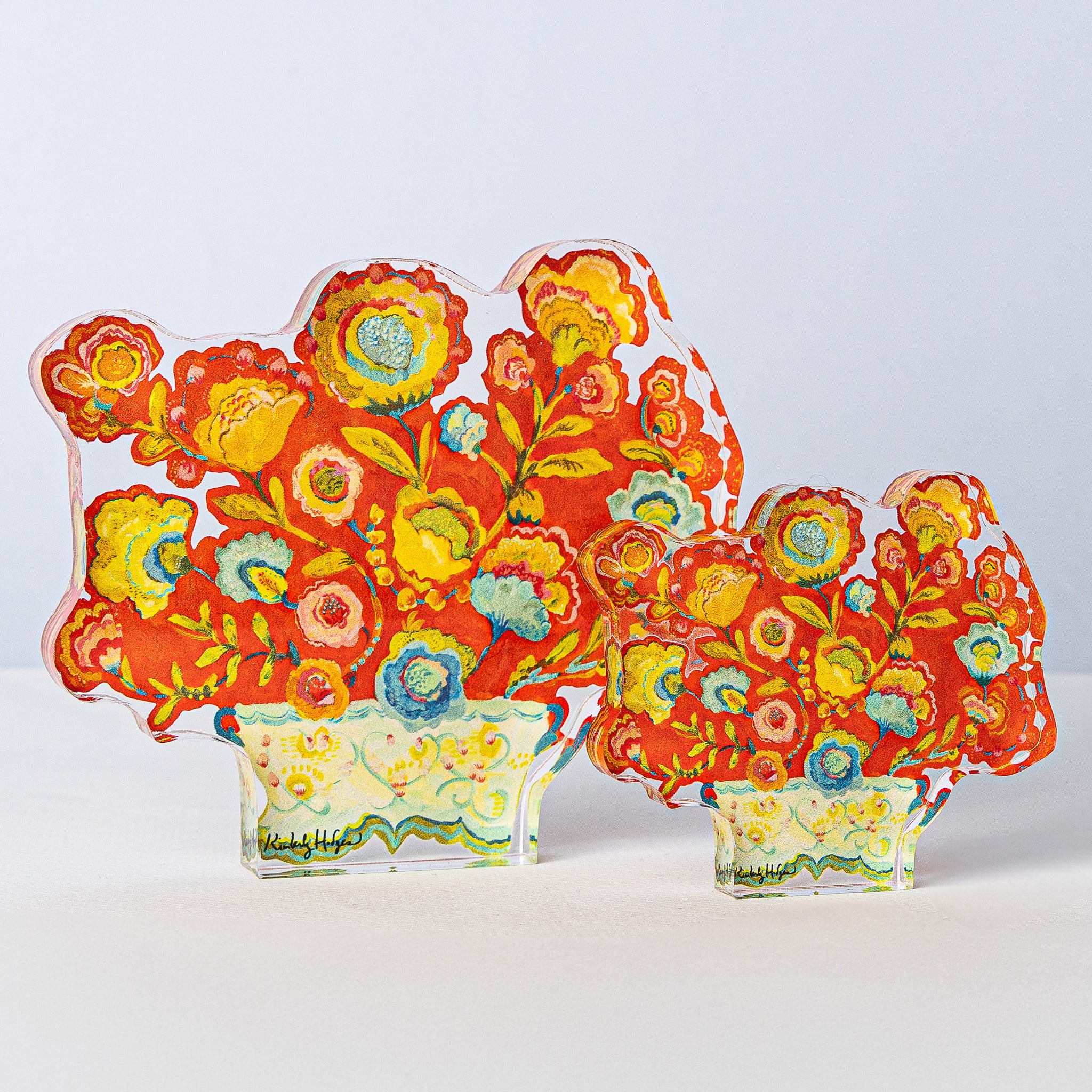 Kimberly Hodges is an artist and designer with over 30 years of experience. Inspired by the natural world, her artisanal acrylics reflect the organic world with a sense of movement, warmth, and whimsy. Her work invites you to build your own arrangements, one piece at a time.