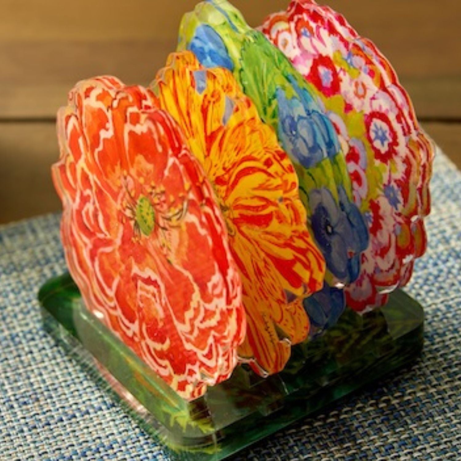 * Kim’s acrylic Coaster Base is made in the USA. These cutouts have rubber feet and are printed with a UV protectant ink so they will never fade.